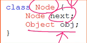 ์ด๋ ๊ฒ ๊ฐ ๋ ธ๋๋ค์ ๋ค์ ๋ ธ๋์ ์ฐธ์กฐ ๋ณ์(next)์ ๊ฐ(obj)์ ๊ฐ์ง๊ณ ์๋ค.