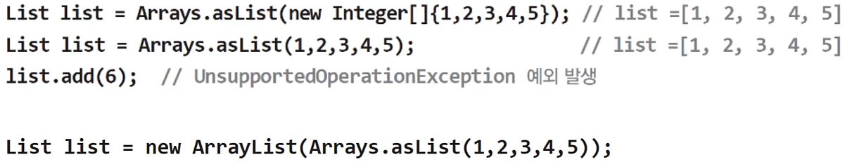 ์ฌ๊ธฐ์ asList()๋ก ๋ง๋ค์ด์ง List๋ ์ฝ๊ธฐ ์ ์ฉ์ด๋ค.