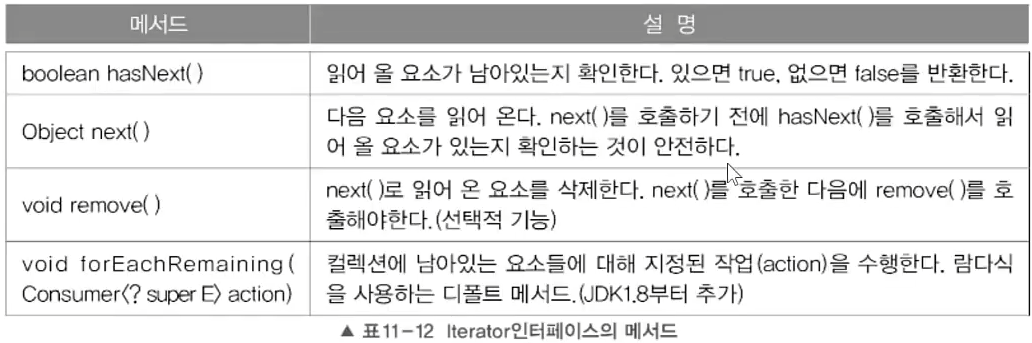 ์ ์ฝ๋์ฒ๋ผ Iterator() ๋ฉ์๋๋ฅผ ํตํด Iterator์ ๊ฐ์ฒด๋ฅผ ์์ฑํด์ ์ฌ์ฉํ๋ฉด ๋๋ค.