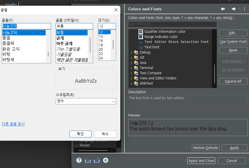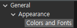 2. perferences ์์ General - Appearance - Colors and Fonts๋ฅผ ์ ํ