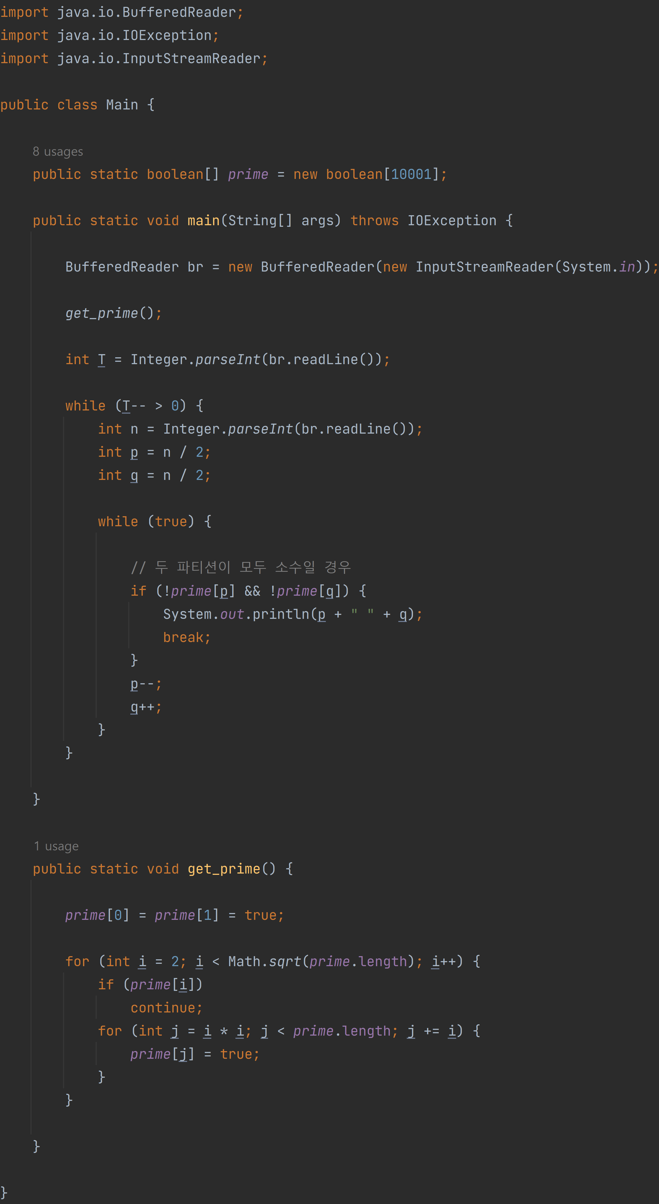 [๋ฐฑ์ค] 9020๋ฒ : ๊ณจ๋๋ฐํ์ ์ถ์ธก - JAVA [์๋ฐ]