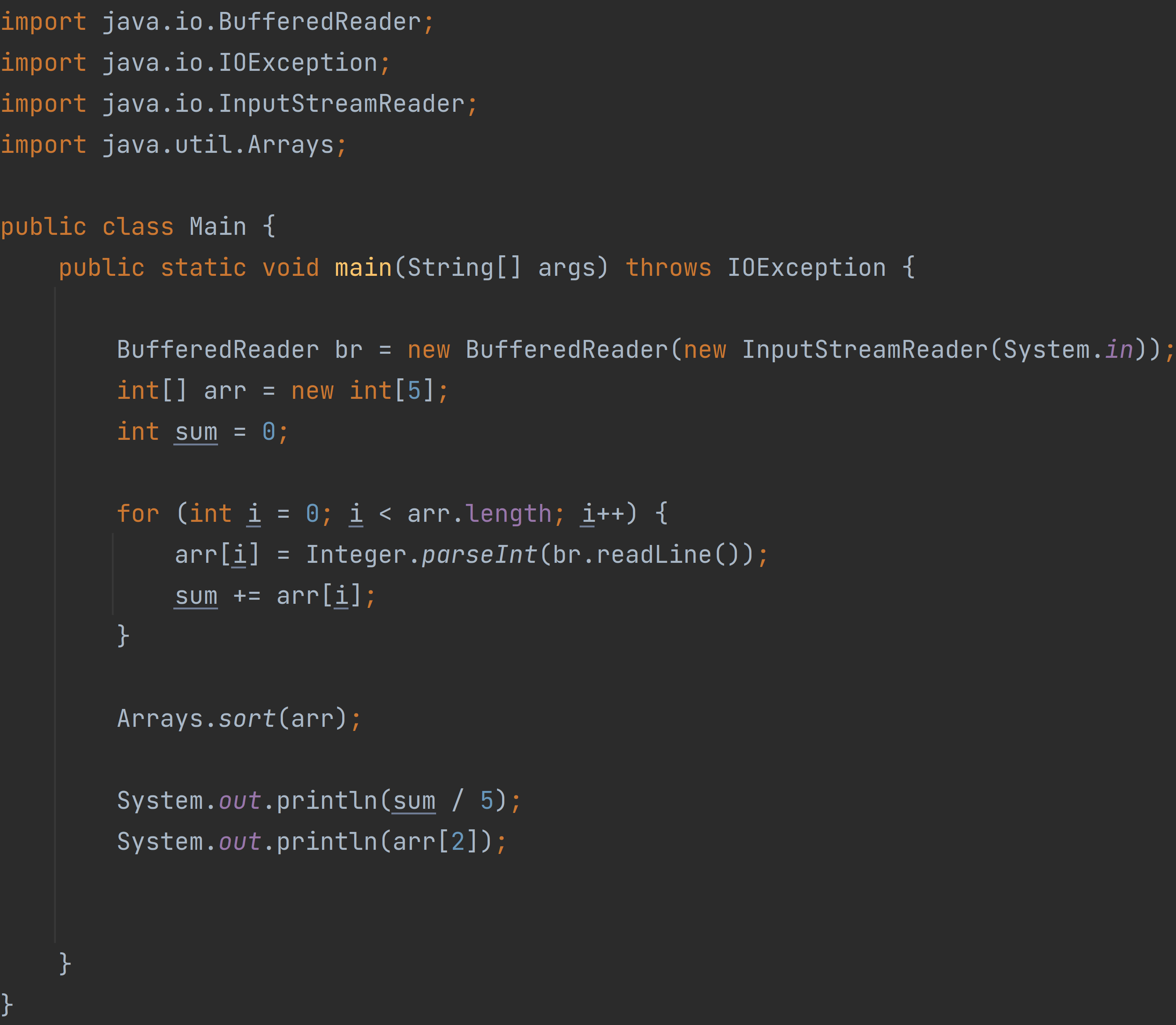 โ ํ๊ท ๊ณผ ์ค์๊ฐ์ ์ถ๋ ฅ