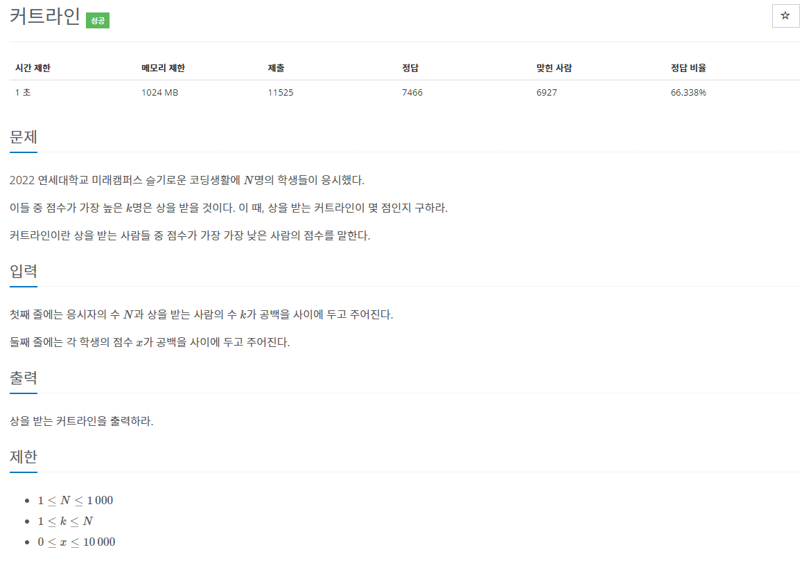 ์ํ ์์์๋ค ๊ฐ์ด๋ฐ 1๋ฑ์ 100์ , 2๋ฑ์ 98์ , 3๋ฑ์ 93์ ์ด๋ค. 2๋ฑ๊น์ง ์์ ๋ฐ์ผ๋ฏ๋ก ์ปคํธ๋ผ์ธ์ 98์ ์ด๋ค.