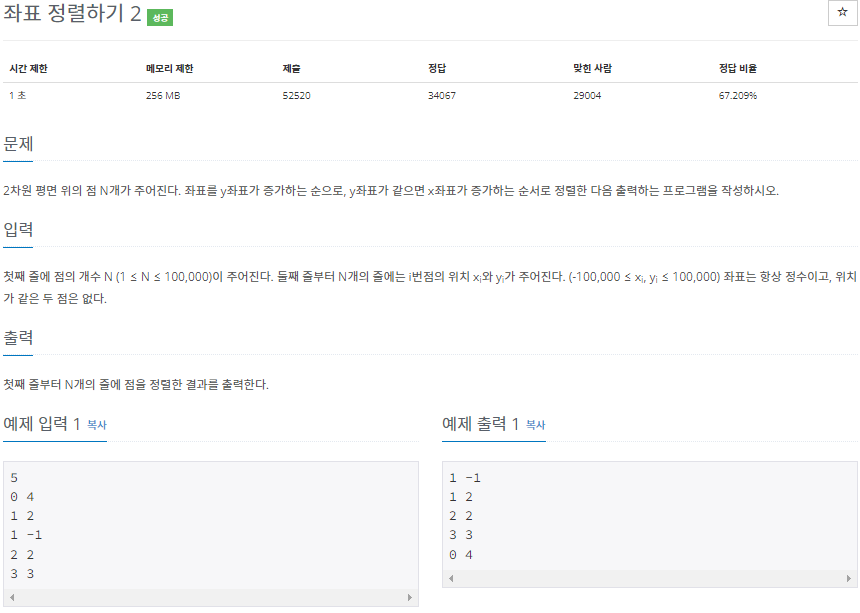 [๋ฐฑ์ค] 11650๋ฒ : ์ขํ ์ ๋ ฌํ๊ธฐ