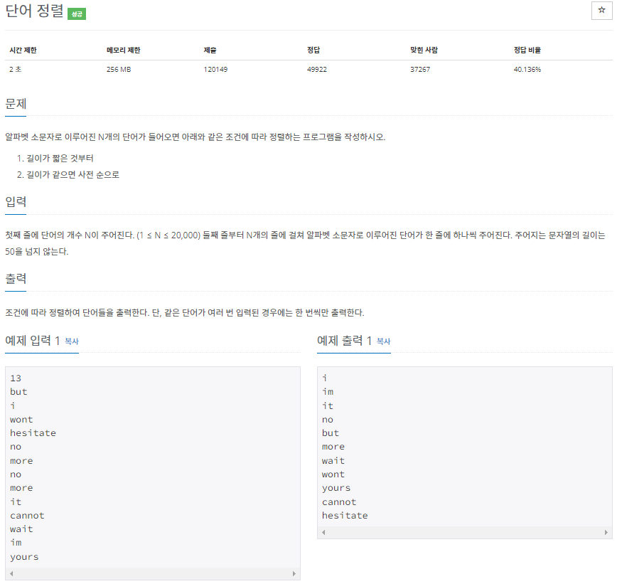1181๋ฒ: ๋จ์ด ์ ๋ ฌ