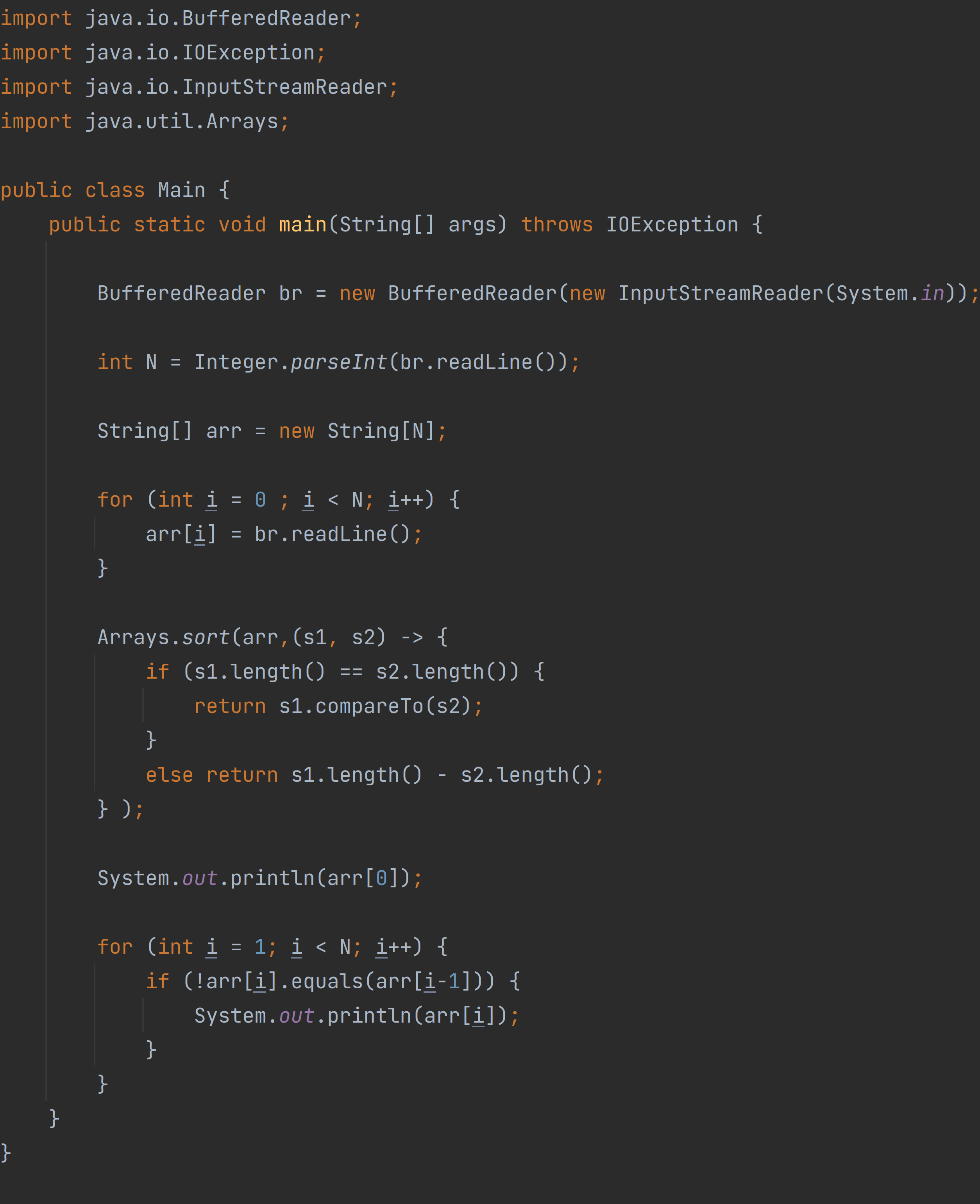 [๋ฐฑ์ค] 1181๋ฒ : ๋จ์ด ์ ๋ ฌ - JAVA [์๋ฐ]