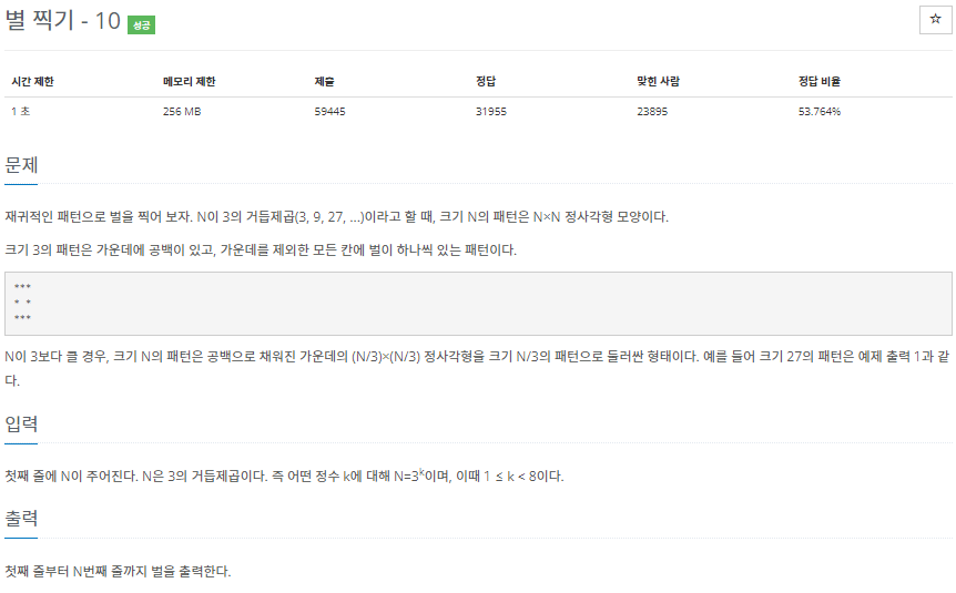 [๋ฐฑ์ค] 2447๋ฒ : ๋ณ ์ฐ๊ธฐ - 10 - JAVA [์๋ฐ]