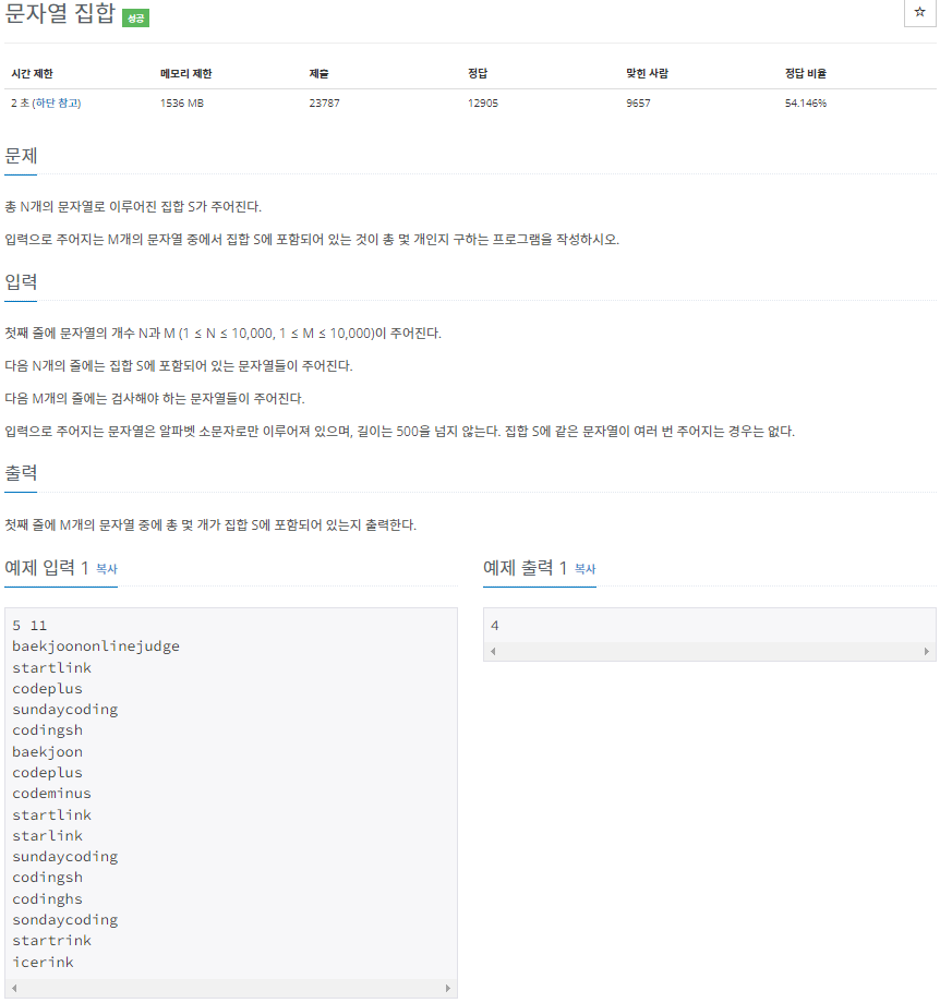 14425๋ฒ: ๋ฌธ์์ด ์งํฉ