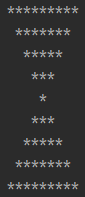์ฒซ์งธ ์ค์๋ ๋ณ 2×N-1๊ฐ, ๋์งธ ์ค์๋ ๋ณ 2×N-3๊ฐ, ..., N๋ฒ์งธ ์ค์๋ ๋ณ 1๊ฐ๋ฅผ ์ฐ๋ ๋ฌธ์ ๋ณ์ ๊ฐ์ด๋ฐ๋ฅผ ๊ธฐ์ค์ผ๋ก ๋์นญ์ด์ด์ผ ํ๋ค.