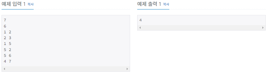 ์ฒซ์งธ ์ค์๋ ์ปดํจํฐ์ ์๊ฐ ์ฃผ์ด์ง๋ค. ์ปดํจํฐ์ ์๋ 100 ์ดํ์ด๊ณ ๊ฐ ์ปดํจํฐ์๋ 1๋ฒ ๋ถํฐ ์ฐจ๋ก๋๋ก ๋ฒํธ๊ฐ ๋งค๊ฒจ์ง๋ค. ๋์งธ ์ค์๋ ๋คํธ์ํฌ ์์์ ์ง์ ์ฐ๊ฒฐ๋์ด ์๋ ์ปดํจํฐ ์์ ์๊ฐ ์ฃผ์ด