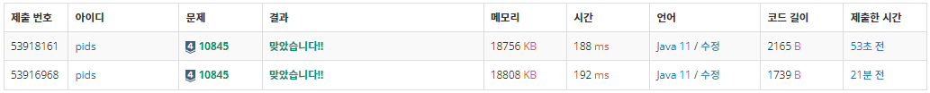10845๋ฒ: ํ