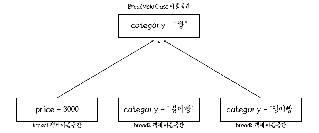 ๊ทธ๋ฆฌ๊ณ bread1 ๊ฐ์ฒด์์๋ pirce๋ผ๋ ๋ณ์์ 3000์ด๋ผ๋ ๊ฐ์ ํ ๋นํด์ฃผ์๋ค.