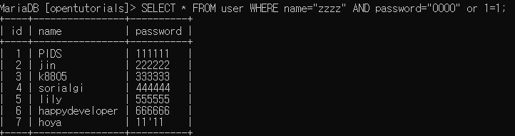 ๊ทธ ์ด์ ๋ or 1=1 ๋๋ฌธ์ด๋ค.