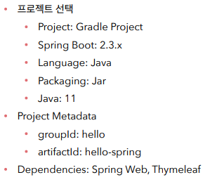 → spring-boot-starter-thymeleaf: ํ์๋ฆฌํ ํ ํ๋ฆฟ ์์ง(View)