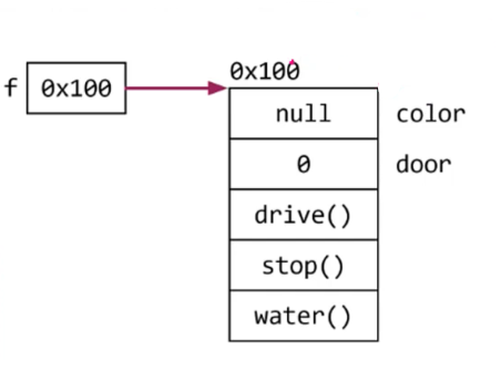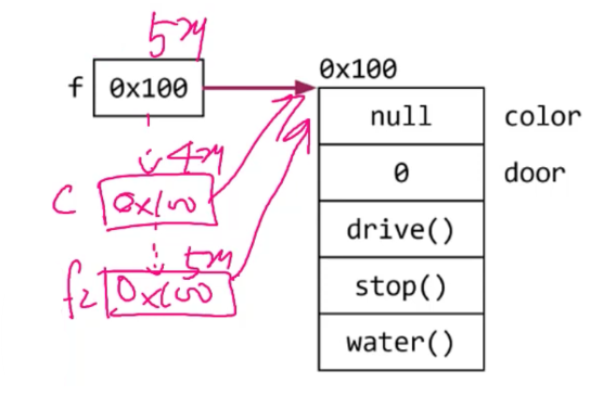 ์์๋ง๋ FireEngine Type์ ๊ฐ์ฒด๋ฅผ ๊ฐ๋ฆฌํค๋ ์ฃผ์๋ฅผ ์ ์ฅํ f๊ฐ์ c์ ์ ์ฅํ๋ค.