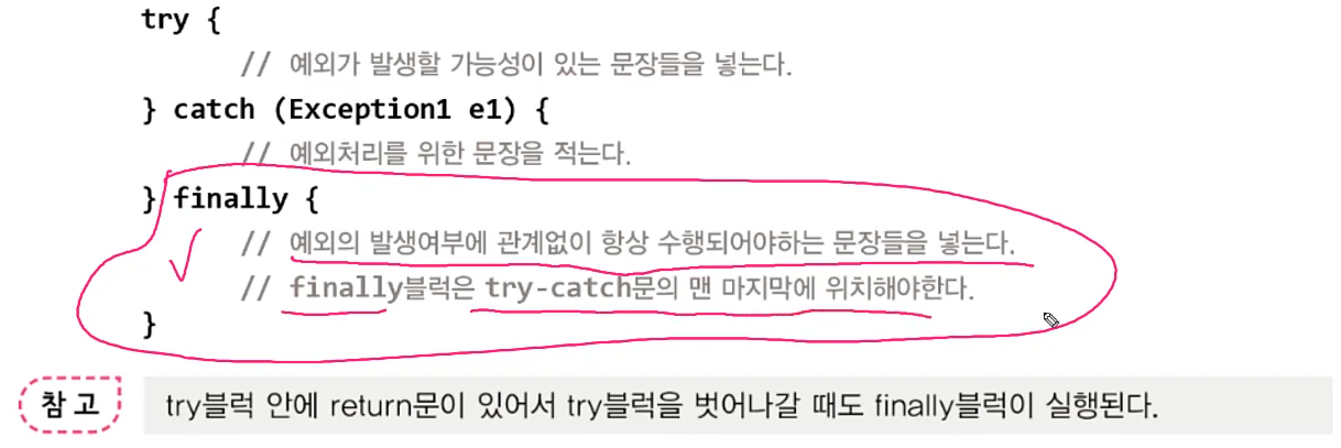 finally๋ธ๋ญ ์์ฑํ๋ ๋ฐฉ๋ฒ์ ์ ์ฝ๋์ ๊ฐ๋ค.