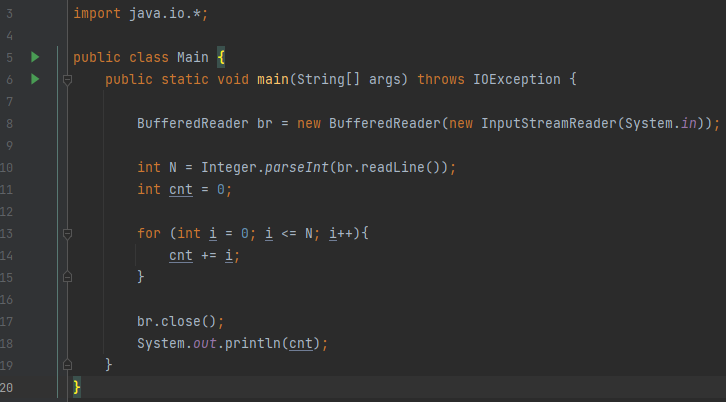 n์ด ์ฃผ์ด์ก์ ๋, 1๋ถํฐ n๊น์ง ํฉ์ ๊ตฌํ๋ ํ๋ก๊ทธ๋จ์ ์์ฑํ์์ค.